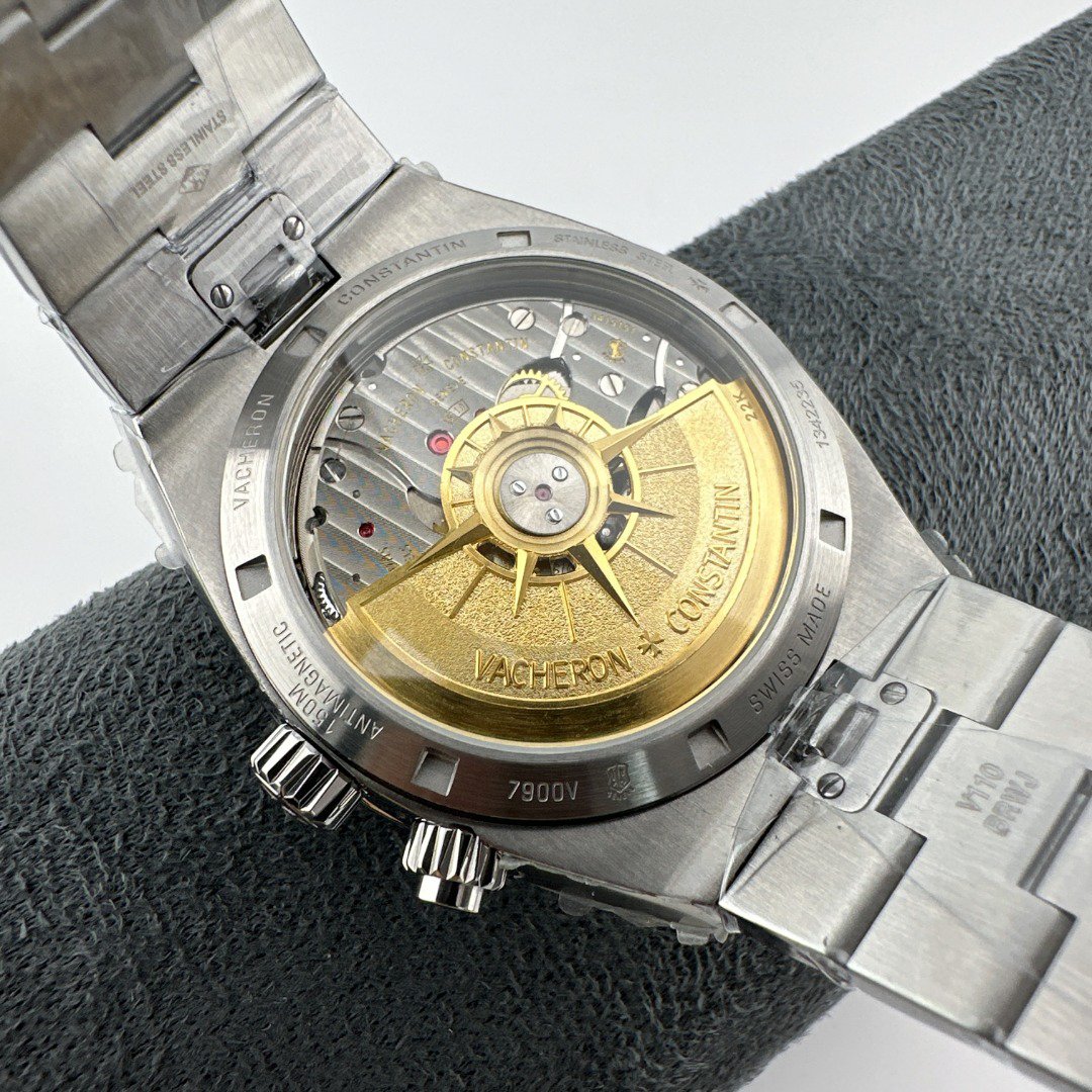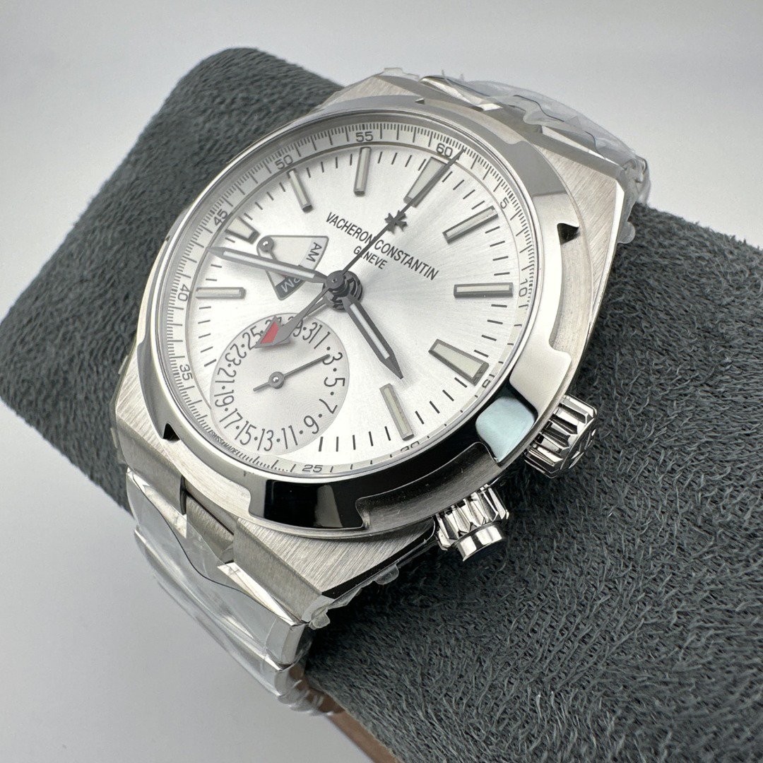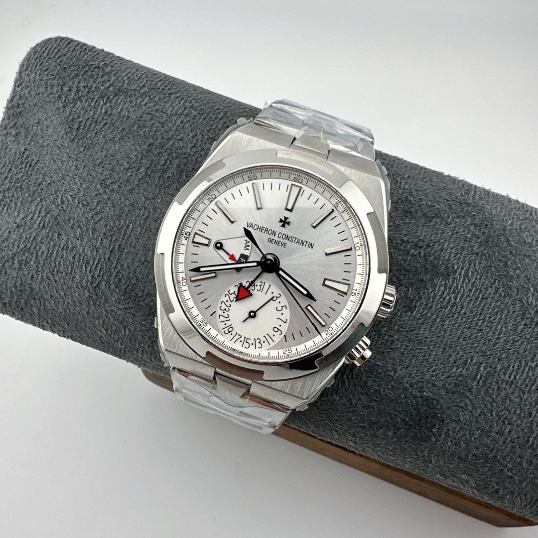 8F Vacheron Constantin Overseas 7900V: 41mm stainless steel case with datedual time zoneand time functions. 5110DT automatic movement. Quick-release strap system offers steelleatheror rubber options for versatile styling.