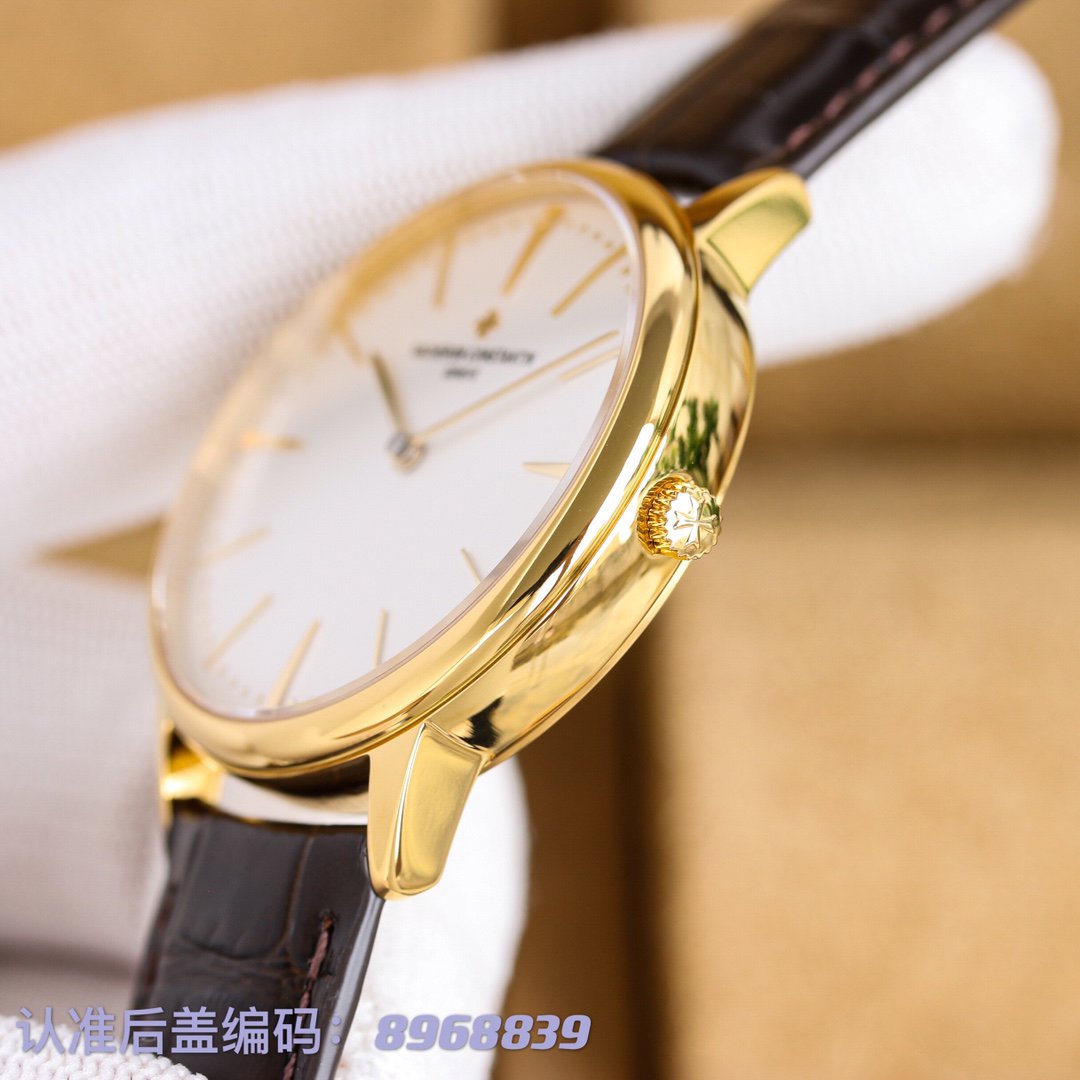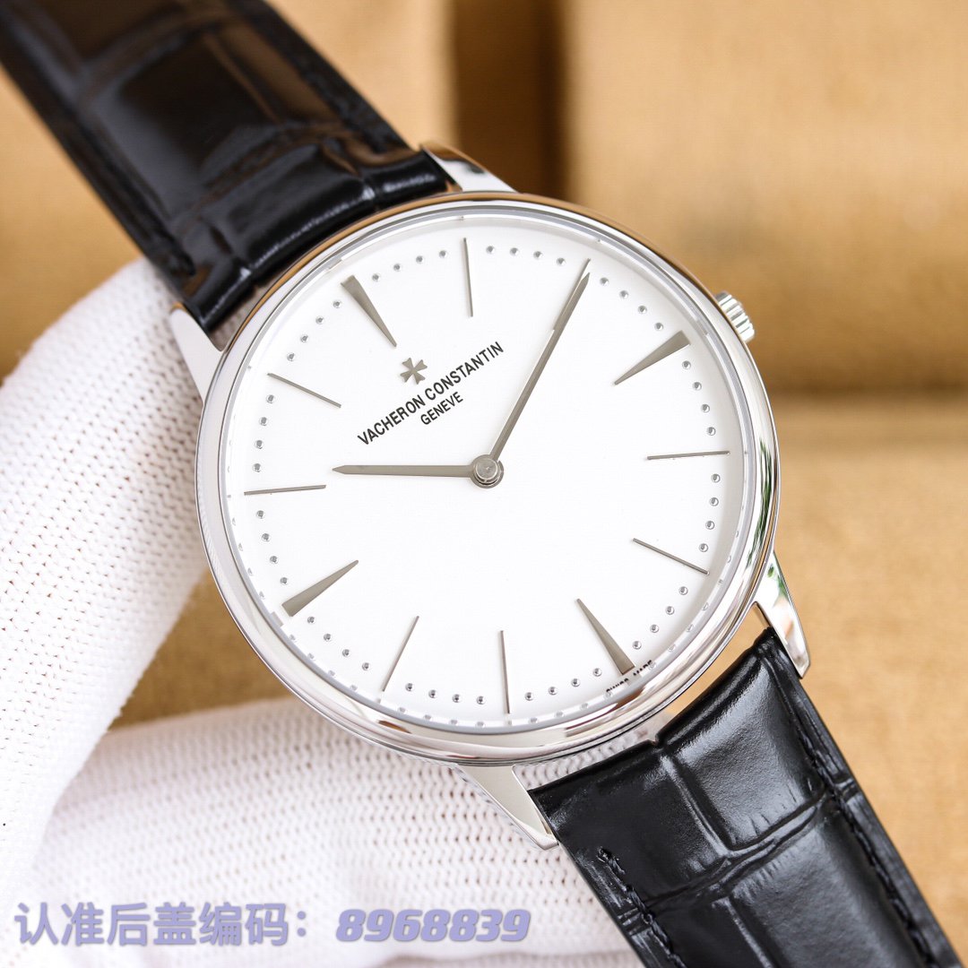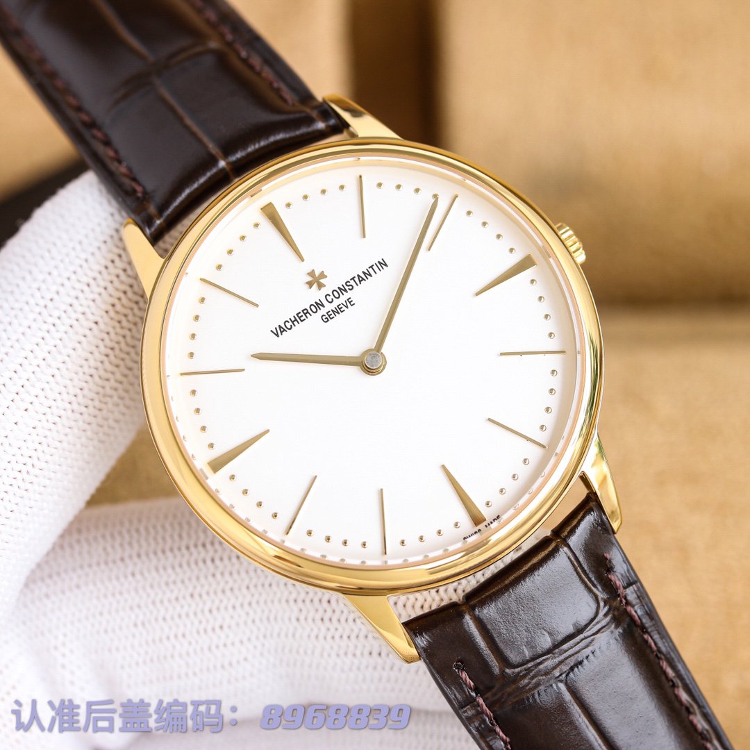 Vacheron Constantin Patrimony 85180 and 81180 with a minimalist design. Features a 40mm stainless steel or rose gold casea sapphire crystaland a 9015 movement. Paired with an Italian calf leather strap with a Maltese cross buckle.
